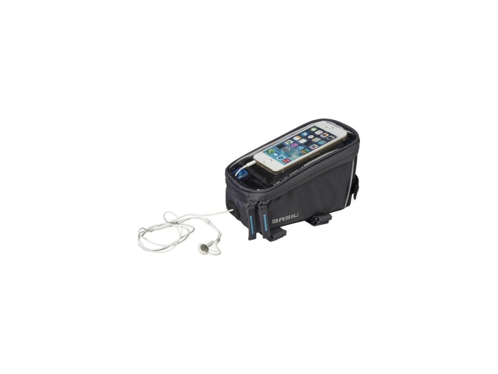 Polyester s vodoodpudivou úpravou, zapínání na suchý zip, vnitřní síťovaná kapsa, průhledná kapsa na chytrý telefon (s velikostí displeje do 5,5 palce) s ovládáním, otvor pro kabel sluchátek, kryt proti dešti, extra reflexní detaily.