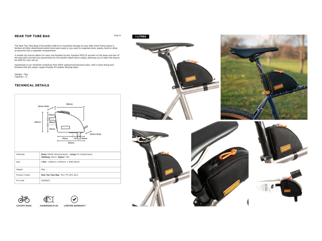Restrap Rear Top Tube Bag taška na rám, 1 l, černá