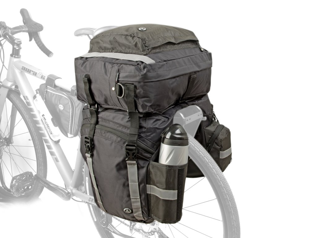 AUTHOR Tourer 40 je prostorná variabilní brašna s odnímatelnou horní taškou. Díky tvarovaným rohům nedochází při šlapání ke kopání brašen. Obě brašny mají velkou hlavní kapsu na zip (13 l). V horní části je madlo pro snadné přenášení. Vrchní brašna (14 l) se jednoduše připevní pomocí suchých zipů a je doplněna ramenním popruhem pro snadné přenášení. V zadní části je kapsa na láhev o objemu 1,5 l a na pláštěnku, která je součástí tašky. Popruhy po obvodu brašny umožňují snadné připevnění dalšího příslušenství (stan, spací pytel, spací podložka). Ideální brašny na jednodenní výlety i na vícedenní expediční cyklistiku.
