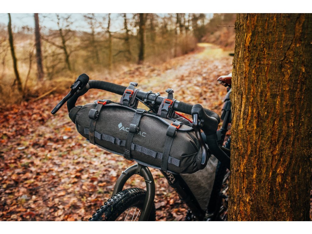 Brašnu Bar Bag lze připnout na upínací systém řídítek Bar Harness a zvětšit tak celkový objem použitelný na řídítkách.