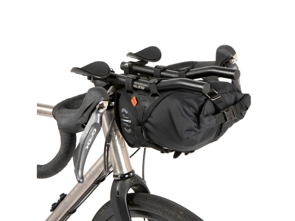Suchý vak je 100% vodotěsný a zajištěný magnetickou sponou Fidlock™, kterou můžete snadno nastavit i v rukavicích. Reflexní prvky na suchém vaku zlepšují viditelnost při jízdě v noci. Držák má odolnou konstrukci z technického vnějšího materiálu X21. Je také vybaven laserem vyřezávanými poutky Hypalon, která umožňují plné nastavení pro různé typy aerodynamických nástavců. Elastická šňůra mezi řídítky poskytuje prostor pro uložení menších předmětů.