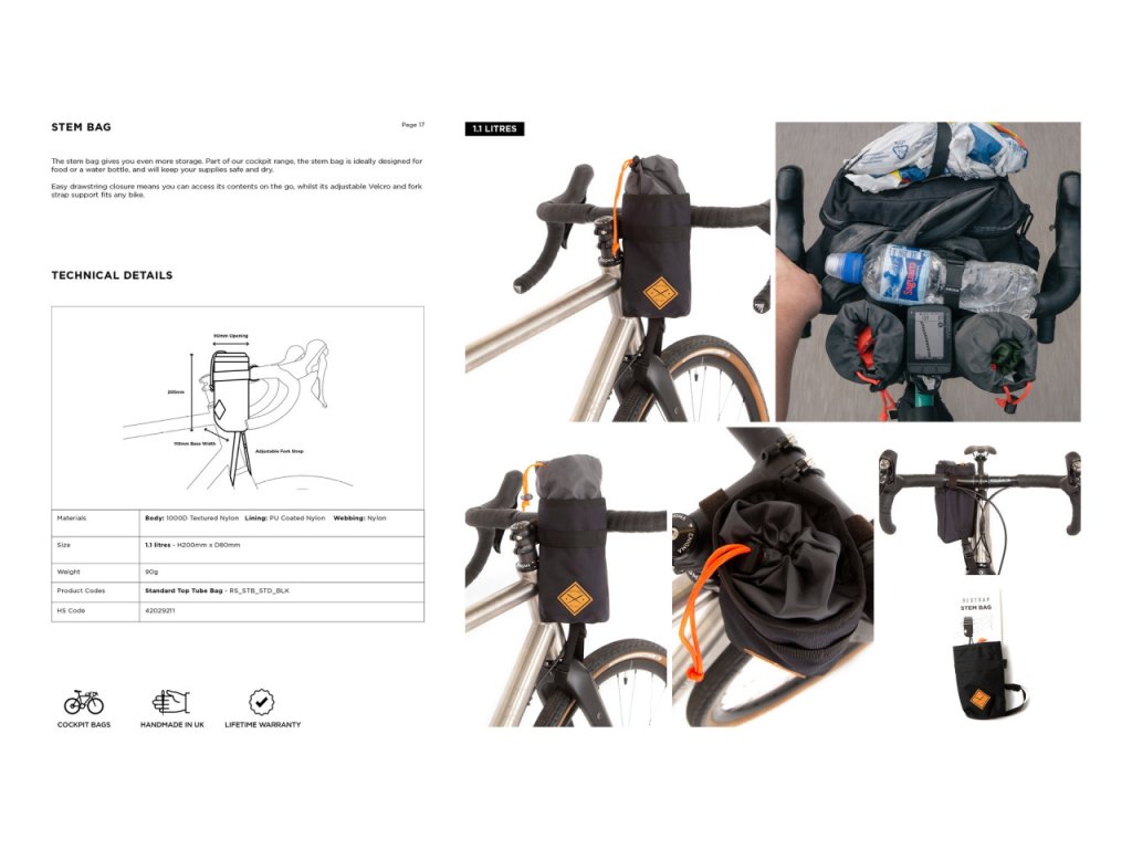 Jednoduché upevnění pomocí suchých zipů, odolné materiály a propracovaný design dělají z produktů Restrap ideální řešení pro každého cyklistu, který chce mít výbavu bezpečně uloženou, chráněnou před deštěm a vždy po ruce.