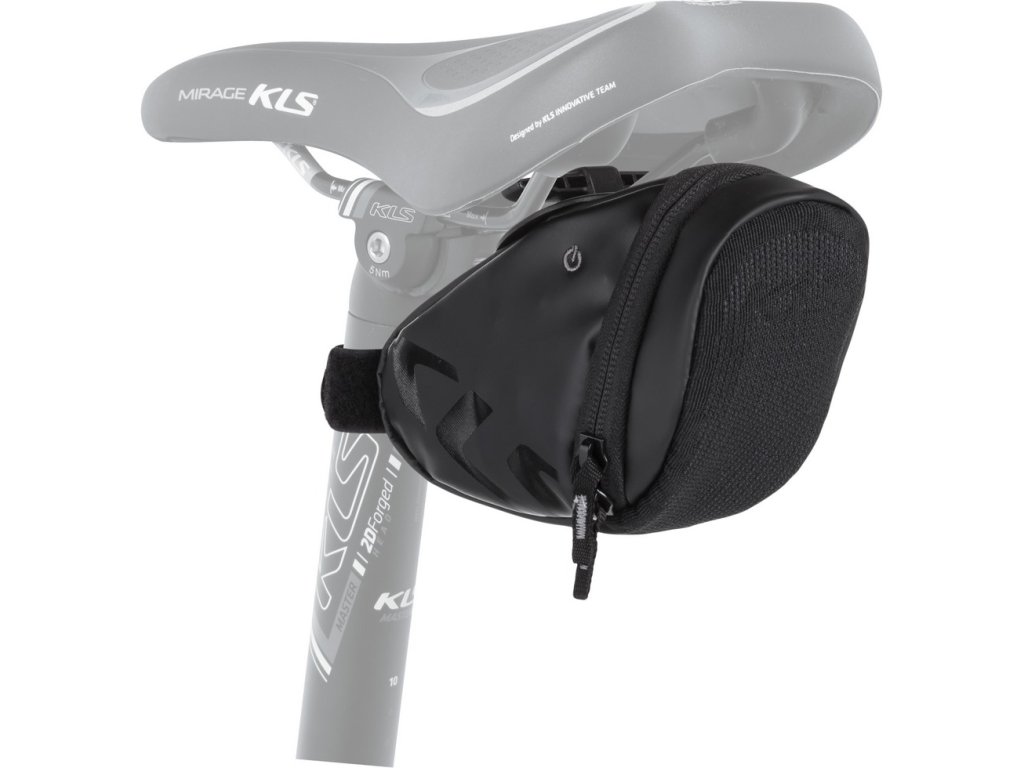 Taška KLS SLOPPER je vyrobena z odolného a voděodolného materiálu Tarpaulin. Reflexní prvky na brašně zvyšují viditelnost a bezpečnost jezdce. Zadní část brašny je tvořena světlovodnými vlákny, která jsou napájena dobíjecí baterií USB, jež vydrží až 4 hodiny provozu. Brašna KLS SLOPPER se upíná pomocí patentovaného držáku ve tvaru T, a to bez použití nářadí.
