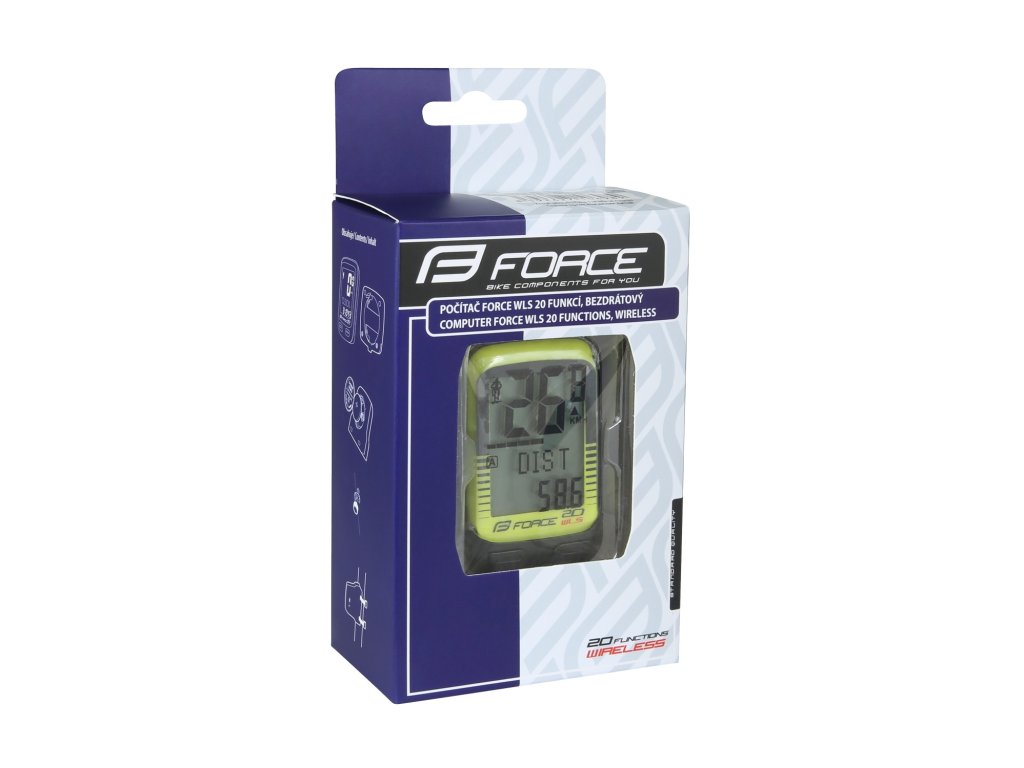 Force cyklocomputer WLS 20 funkcí, bezdrátový, fluo žlutý