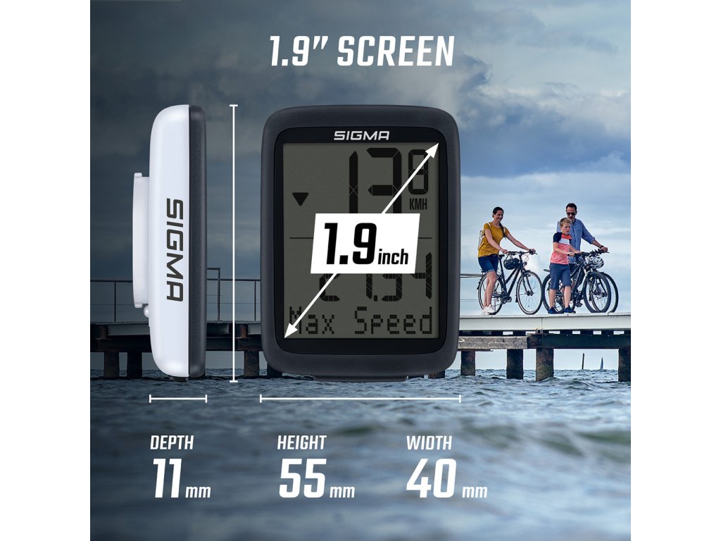 Funkce cyklistického počítače jsou přehledně zobrazeny na prostorném displeji o rozměrech 31 x 39 mm. Velké číslice jsou během jízdy dobře čitelné. SIGMA ORIGINAL má štíhlý a jednoduchý design a hodí se stejně elegantně na městská i horská kola.
