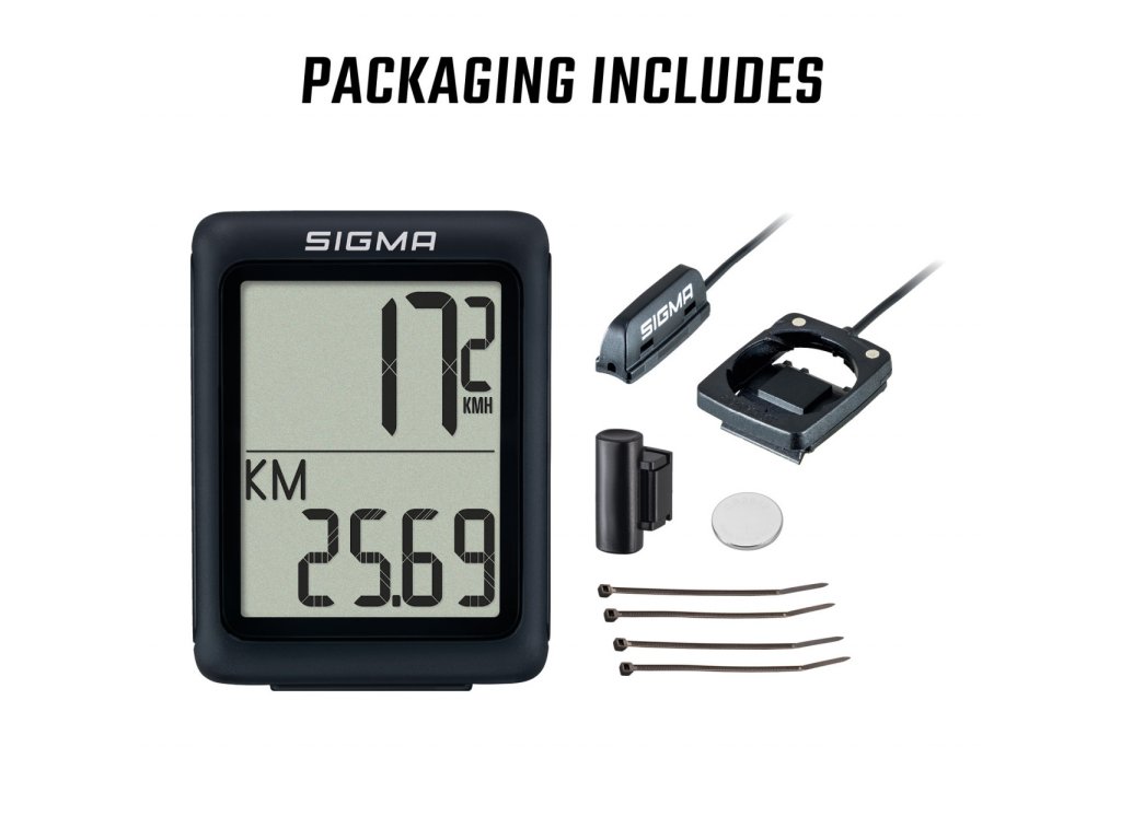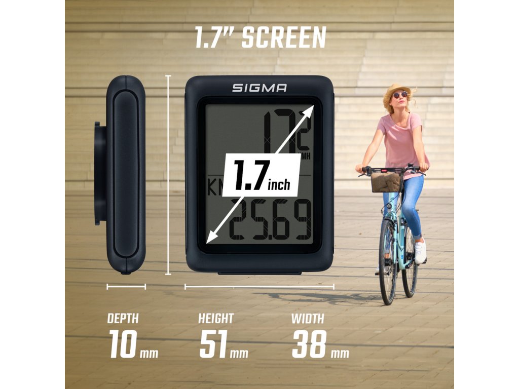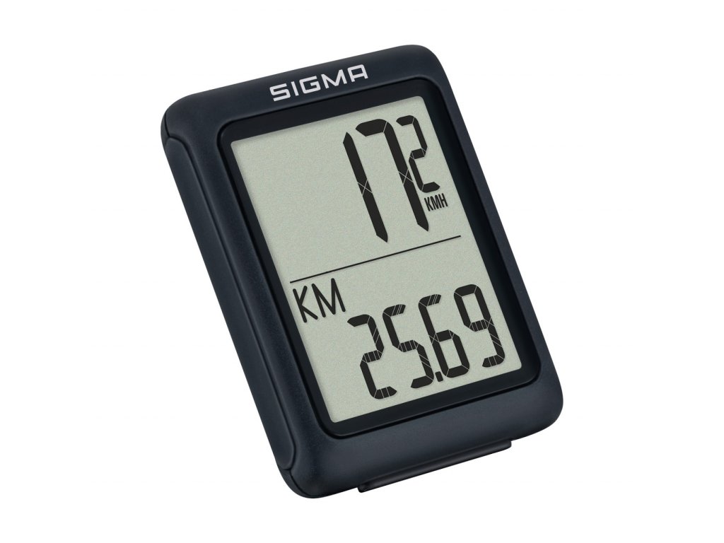 Tento nejmenší cyklocomputer SIGMA je kompaktní a zobrazuje pět nejdůležitějších základních funkcí, které cyklisté rádi mají na očích: rychlost, denní kilometry, celkový počet ujetých kilometrů, čas jízdy a hodiny.