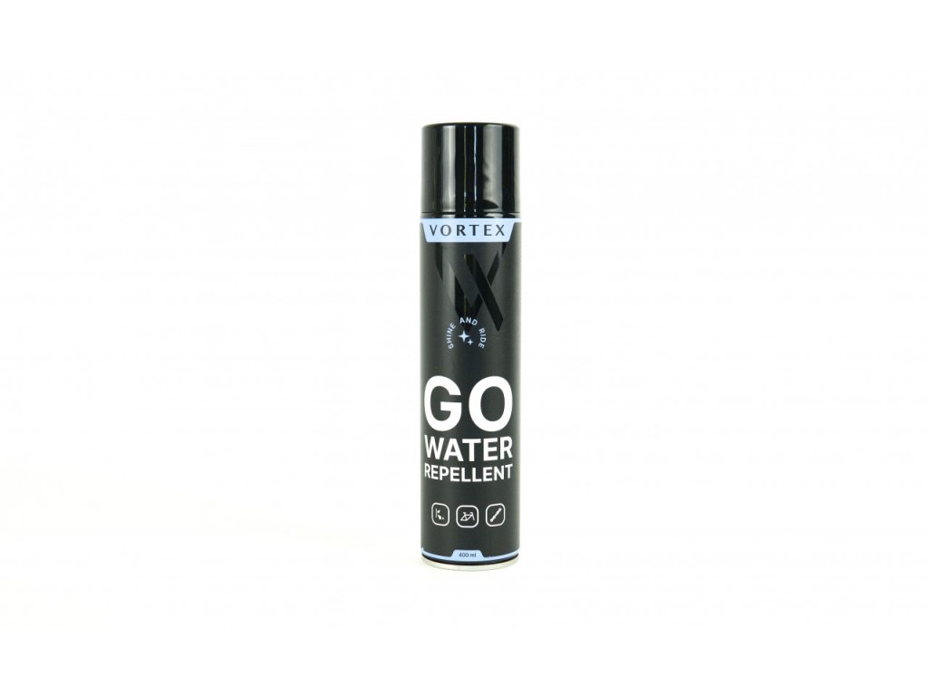 VORTEX vodoodpudivý sprej GO WATER REPELLENT 400ml, řada SHINE & RIDEVodoodpudivý prostředek VORTEX GO WATER REPELLENT chrání citlivé součásti kola před vodou. Přípravek odpuzuje vodu, odstraňuje rez, myje, maže a chrání všechny kovové prvky jízdního kola. Díky svým vynikajícím penetračním vlastnostem se dostane i do nepřístupných míst, čistí a chrání jejich povrch díky speciálním přísadám ve složení, působí také jako prevence proti zadírání komponentů. V případě řetězů jízdních kol se doporučuje použít náš mazací prostředek k promazání řetězu po odpaření přípravkuŘETĚZ VORTEX GO.