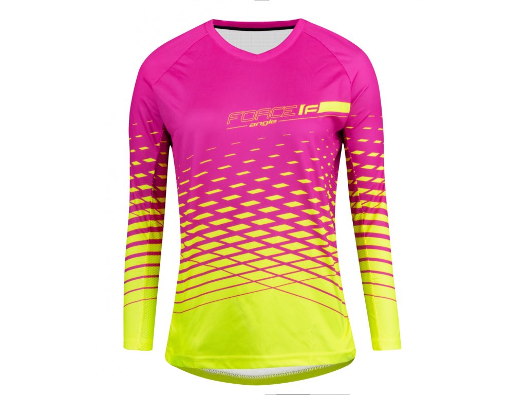 FORCE dres MTB ANGLE dámský dlouhý rukáv, růžovo-fluo