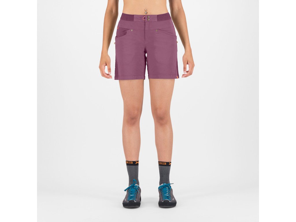 Dámské šortky Karpos Noghera jsou vhodné pro horolezectví, turistiku i běžné opotřebenívyznačují se lehkým bavlněným materiálem, který je mimořádně prodyšný a pohodlný, a netradičním střihem předních a zadních kapes.