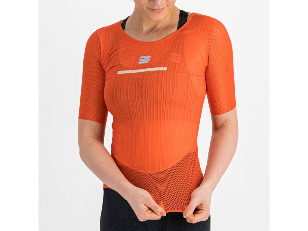 Dámské letní termo tričko s krátkým rukávem Bodyfit Prozajišťuje při nošení v kombinaci s cyklistickými dresy a šortkami značky Sportful maximální pohodlí. Je vyrobena z dvojice funkčních materiálů, které jezdci poskytují optimální tepelný komfort a pocit sucha i během dlouhých jízd.