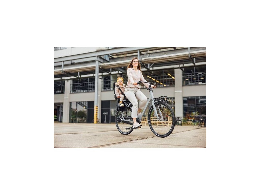 Splňuje potřebné evropské bezpečnostní normy, má ergonomickou polohu sezení a velmi snadno se montuje na nosič pomocí rotační fixační systém.