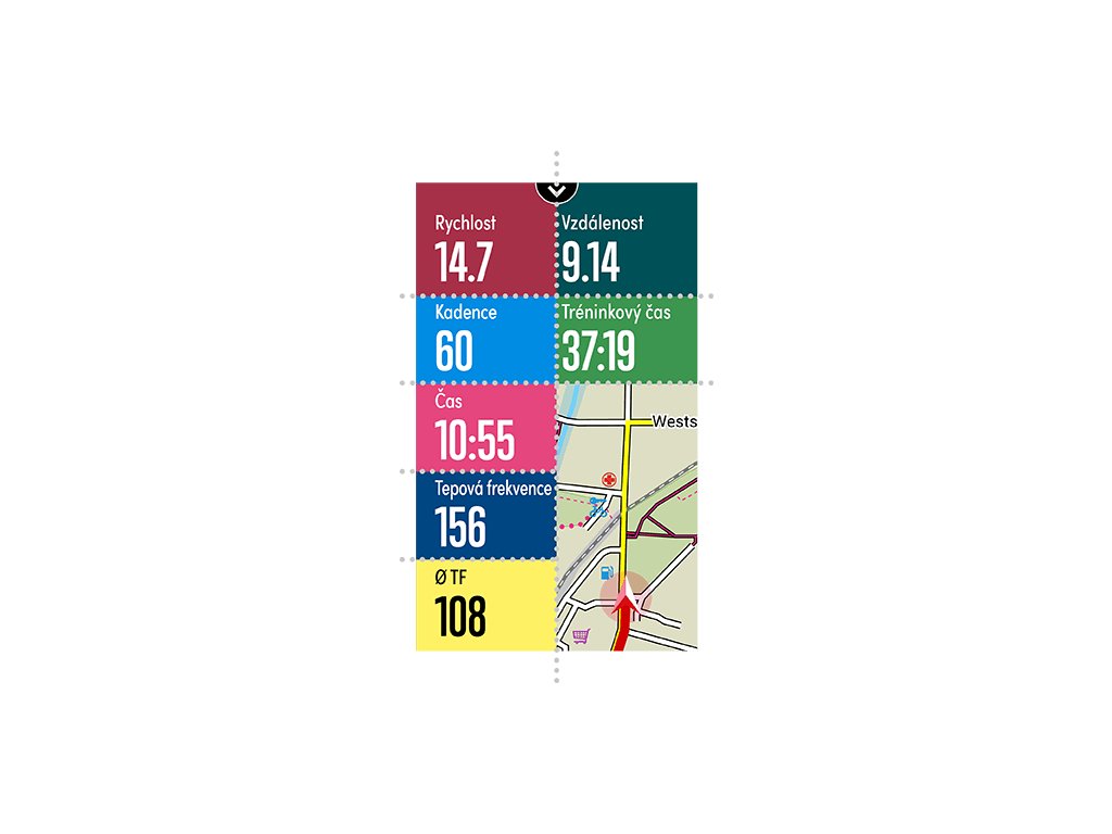 Chcete během jízdy na displeji zobrazovat nadmořskou výšku nebo pokyny podle odboček? Žádný problém: Zobrazené tréninkové hodnoty můžete kdykoli během jízdy změnit a barevně odlišit, aniž byste museli zastavit aktuální záznam dat.