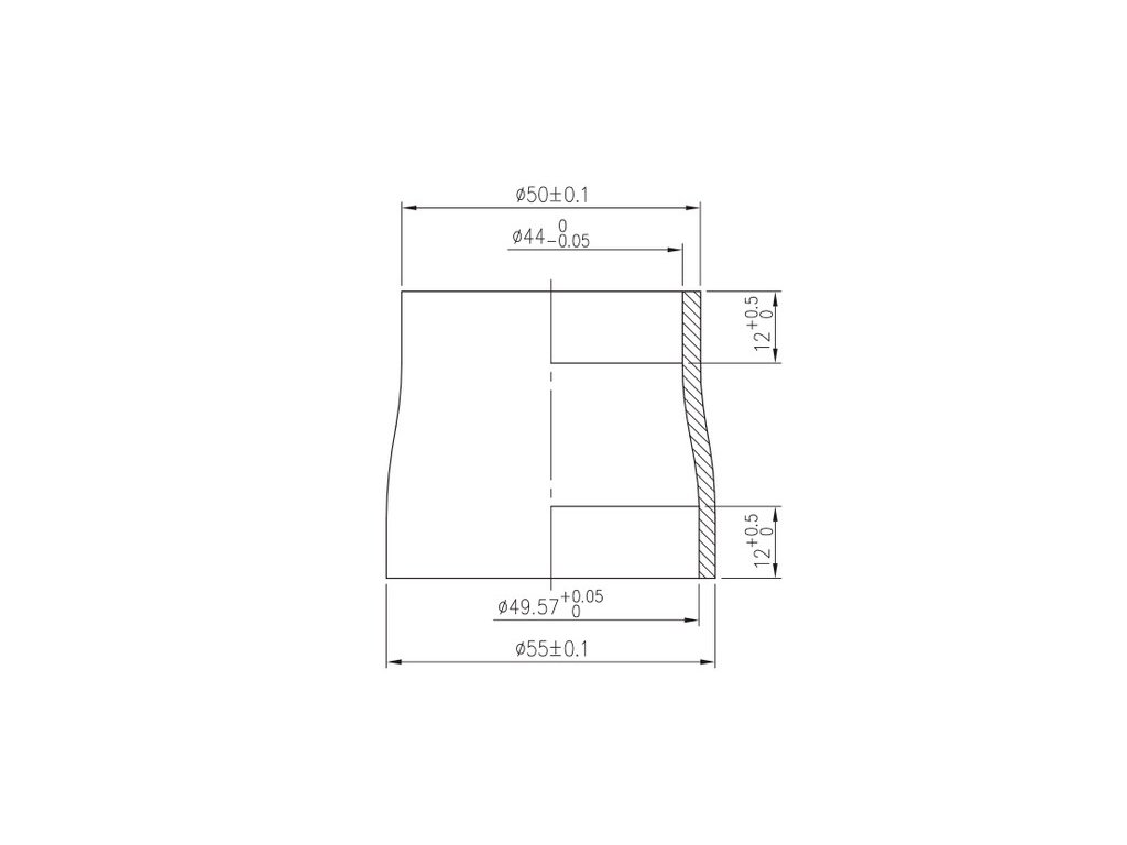 - Horní část: s vnitřním průměrem 44 mm / vnějším průměrem 50 mm