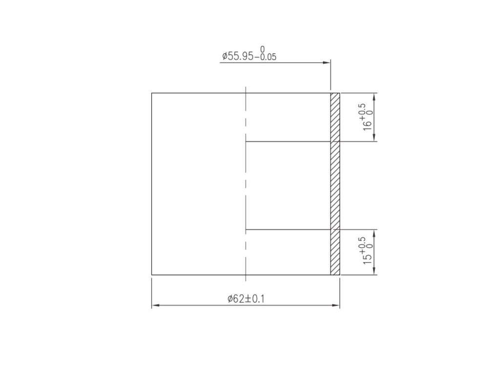 - Horní část: s vnitřním průměrem 55,95 mm / vnějším průměrem 62 mm