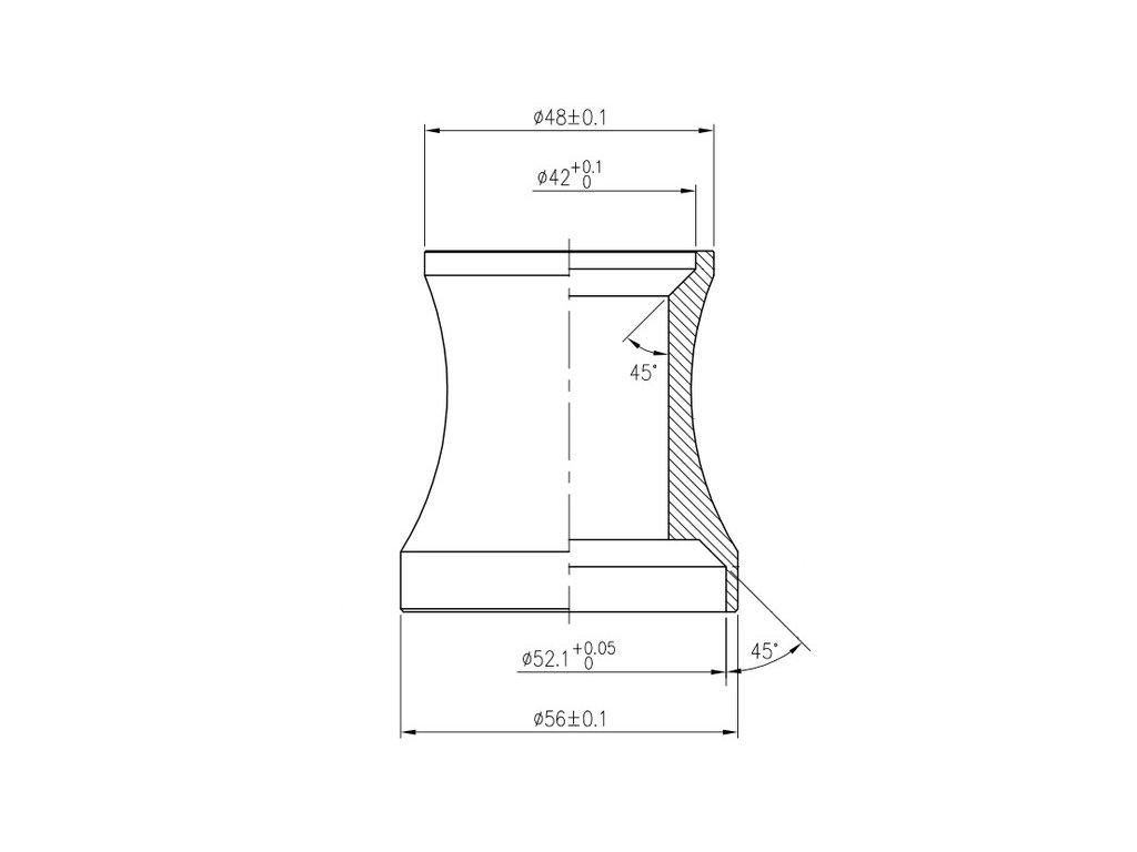 - Horní část: s vnitřním průměrem 42 mm / vnějším průměrem 48 mm