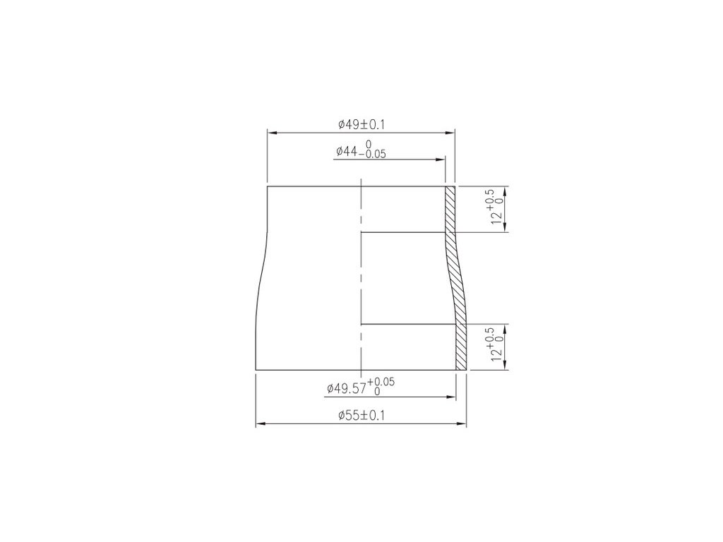 - Horní část: s vnitřním průměrem 44 mm / vnějším průměrem 49 mm