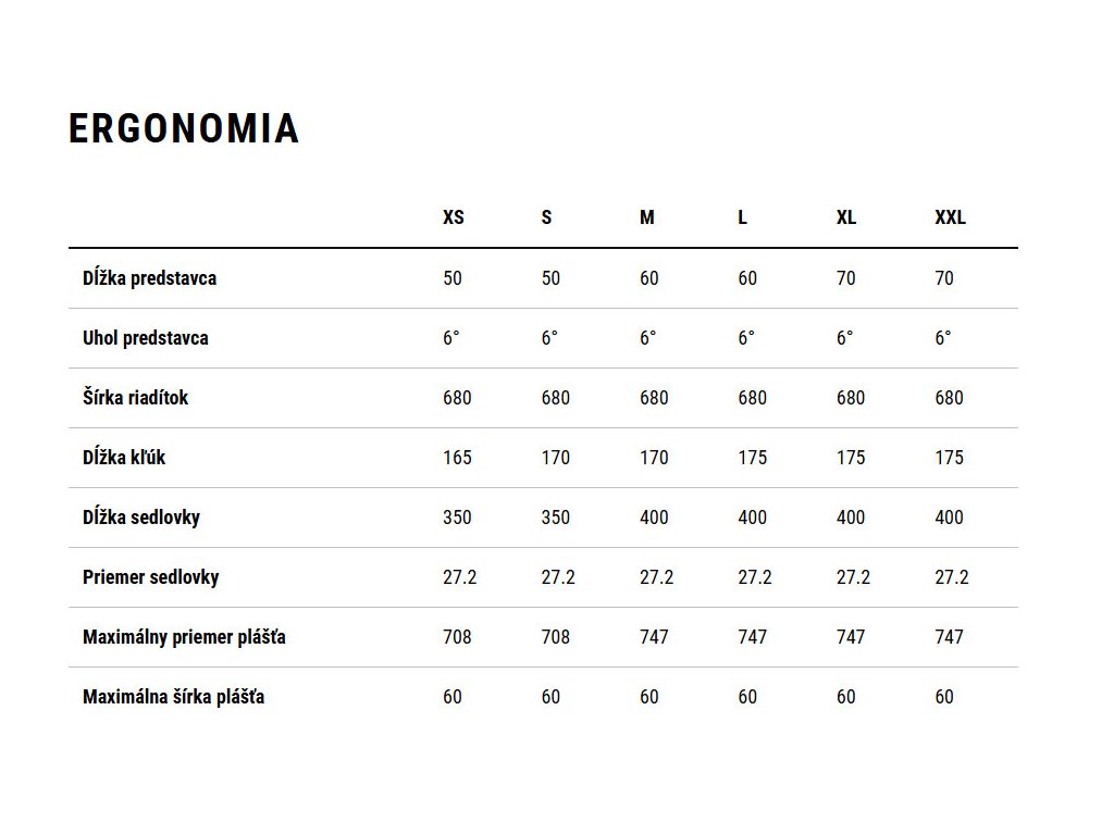 - Velikosti - rozdělení velikostí: 27,5: XS, S // 29: M, L, XL, XXL