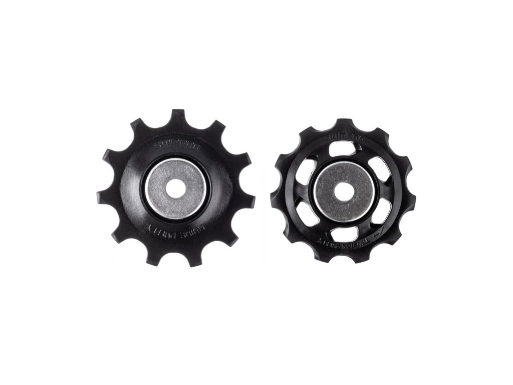 Napínací a vodicí kladka pro přehazovačku Shimano DEORE. Kladky jsou kompatibilní s následujícími přehazovačkami Shimano: RD-M5120, RD-M4120, RD-M6000.Typ: MTB, Celková hmotnost balení: 59 g, 10/11 rychlostí, černá, Materiál: Materiál: hliník/plast