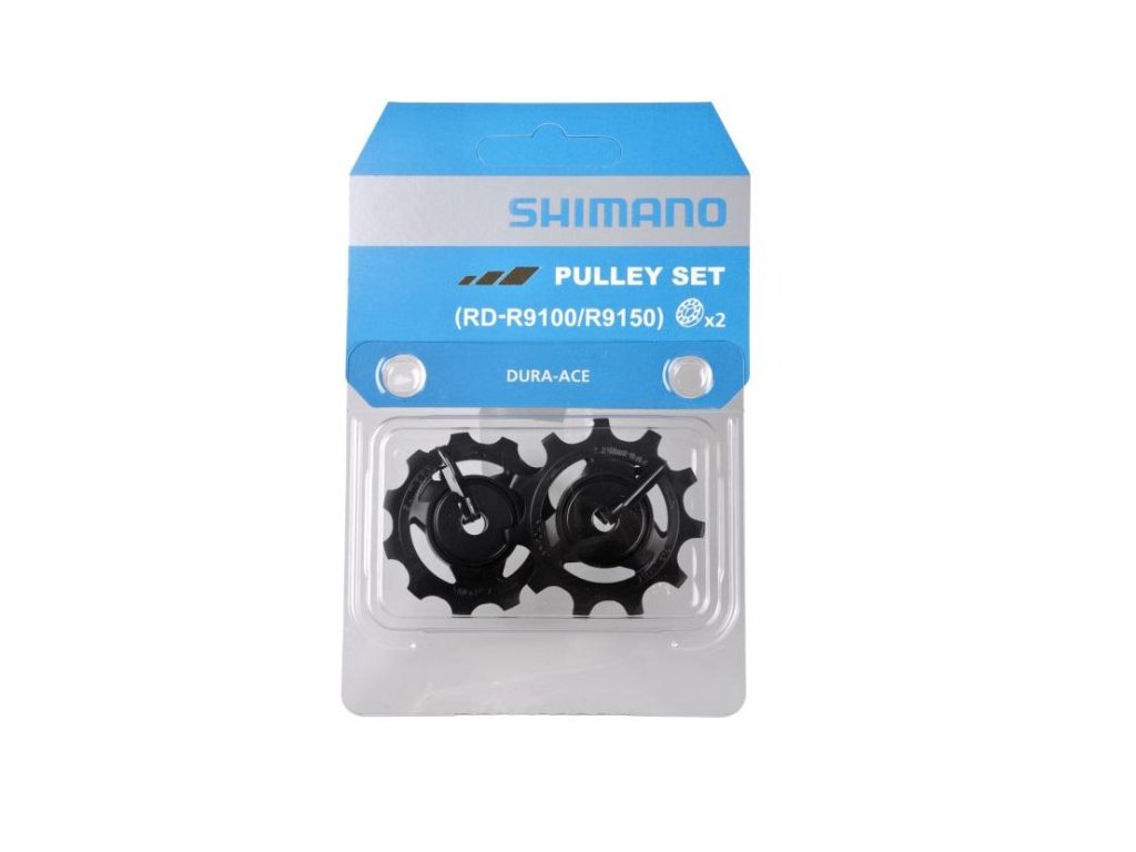 Napínací a vodicí kladka pro přehazovačku Shimano Dura-Ace R9100/R9150. Sada kladek obsahuje přesná ložiska, která zajišťují nízké tření a hladký chod. Kladky jsou kompatibilní s následujícími přehazovačkami Shimano. RD-7900, RD-7970, RD-7800, RD-7700, RD-R9100, RD-R9150.Typ: MTB, Celková hmotnost balení: 32 g, 11 rychlostí, černá, Materiál: Materiál: hliník/plast