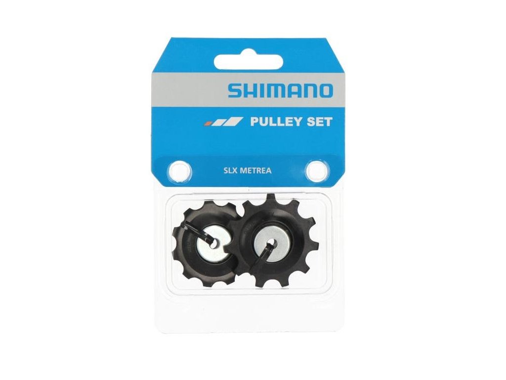 Napínací a vodicí kladka pro přehazovačku Shimano SLX M7000. Sada kladek obsahuje přesná ložiska, která zajišťují nízké tření a hladký chod. Kladky jsou kompatibilní s následujícími přehazovačkami Shimano. RD-M786, RD-M781, RD-M780, RD-M773, RD-T8000.Typ: MTB, Celková hmotnost balení: 38 g, 11 rychlostí, černá, Materiál: Materiál: hliník/plast