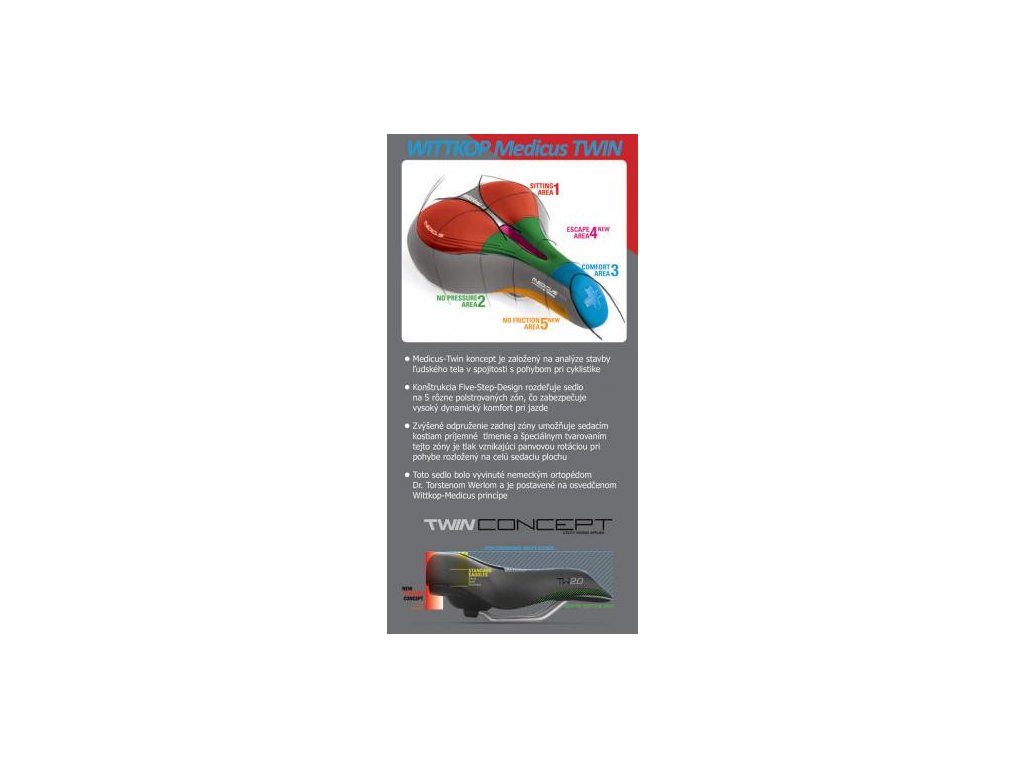Koncepce sedel Medicus-Twin vychází z analýzy stavby lidského těla v souvislosti s cyklistickým pohybem.