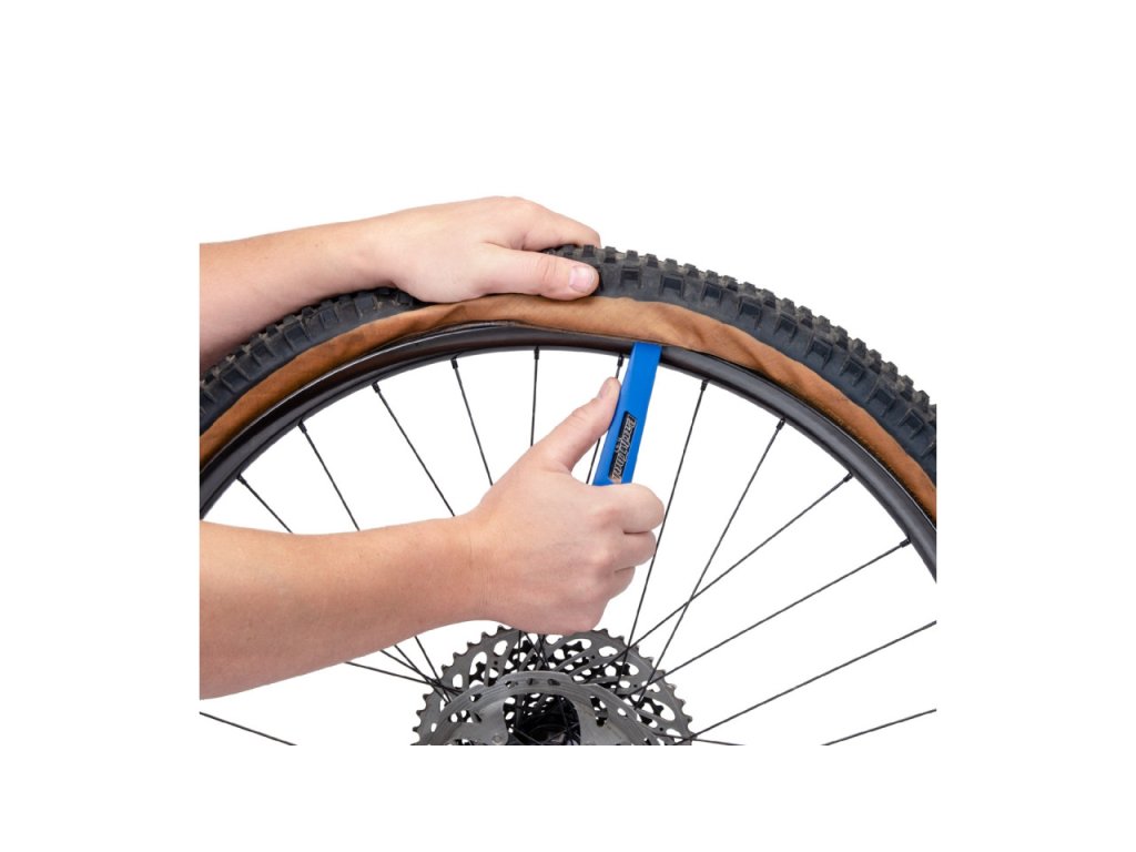 Montážní a demontážní nářadí pro pneumatiky jízdních kol. Mají originální konstrukci - ocelové tělo pro dostatečnou tuhost, navíc potažené plastem pro ochranu pláště a ráfku.