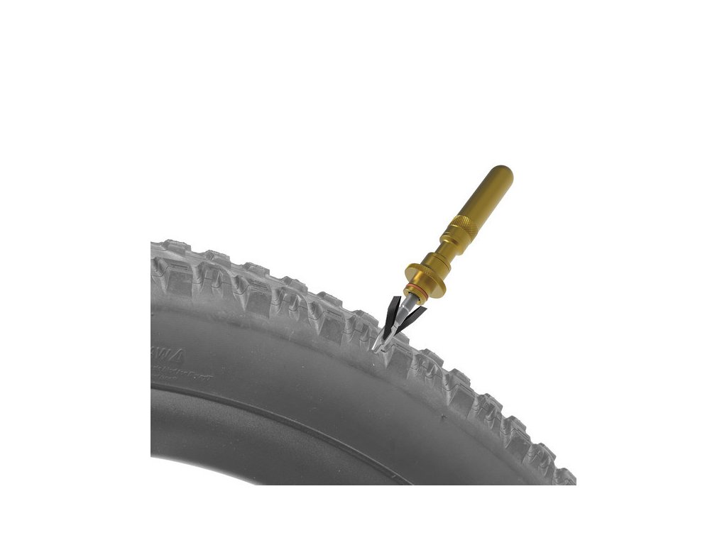 Velmi kompaktní sada pro opravu propíchnutých bezdušových pneumatik v nouzových podmínkách. - duralová duše obsahuje potřebné nástroje (těsnicí adaptér, zdrsňovač otvorů, obvaz na opravu knotů, čepel nože) - polymerová duše