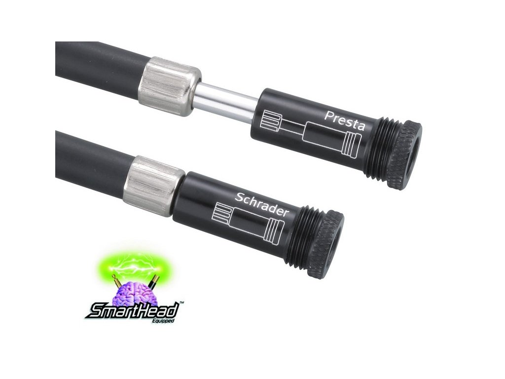 - Hadice s adaptérem SmartHead ThreadLock umožňuje nafouknutí přes galuskový i automatický ventil a zároveň snižuje napětí ventilu během nafukování