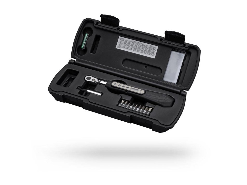 Přesný momentový klíč s LCD displejem.Lze nastavit téměř všechny momenty potřebné pro jízdu na kole.