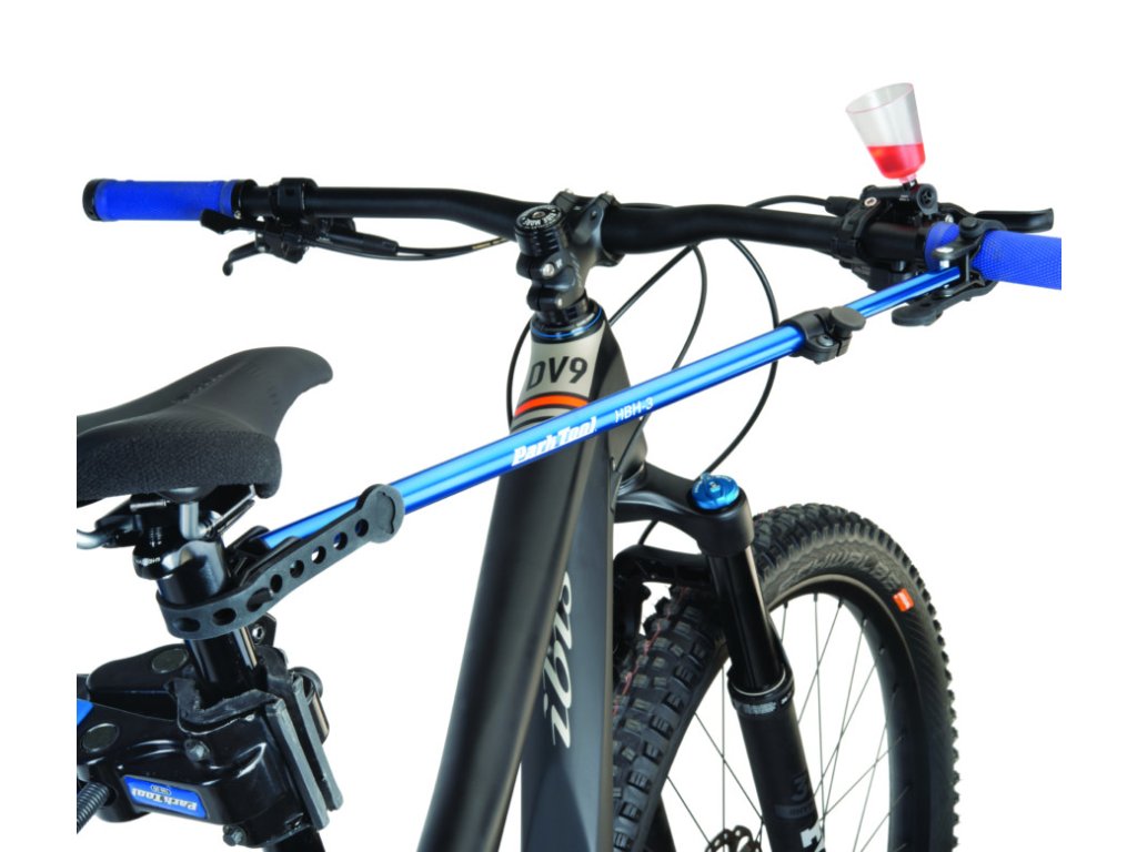Držák řídítek je praktická pomůcka, která zabraňuje nežádoucímu otáčení řídítek při upnutí kola do montážního nosiče. Téměř nepostradatelný při odvzdušňování brzd, praktický při výměně lanek a bovdenů, instalaci brzdových a přehazovacích páček atd. Univerzální montáž, rameno z eloxované hliníkové slitiny, měkké konce ve tvaru vidlice a gumičky pro upevnění trubek o průměru 12-60 mm, nastavitelná délka 45-81 cm