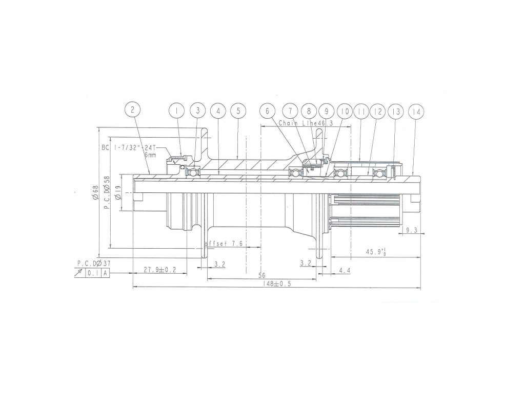 Náboj zadní D442SB-CL-B12-S4S-11S boost, slitina, centerlock, eloxovaný černě, 32H/14G, náprava CrMo 12x148, bez loga, ložiska NBK, ocelová volnoběžka Shim11 typu B2, s 9 rychlostmi 1,5mm distanční podložkou, typ B2, D:45.9 R=L, bez průchozí osy, OEM (CN)
