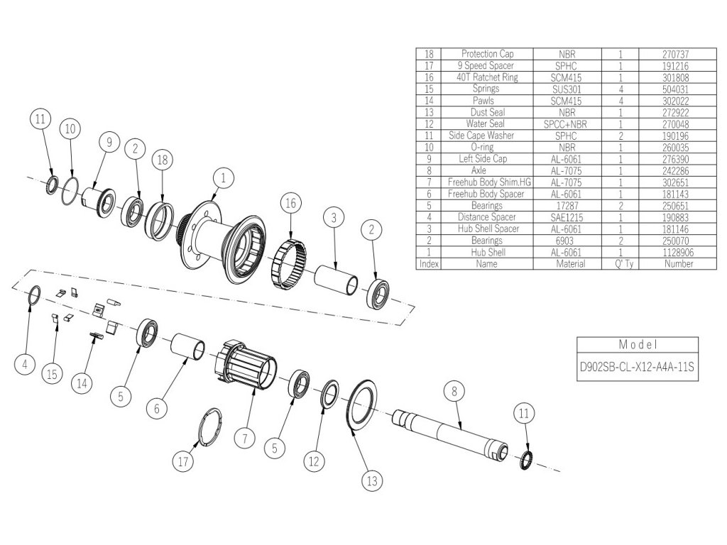 Zadní náboj D902SB-CL-X12-A4A-11S, leštěný černý elox, 32 děr, osa 12x142 mm, Shimano HG9, H-TYPE.