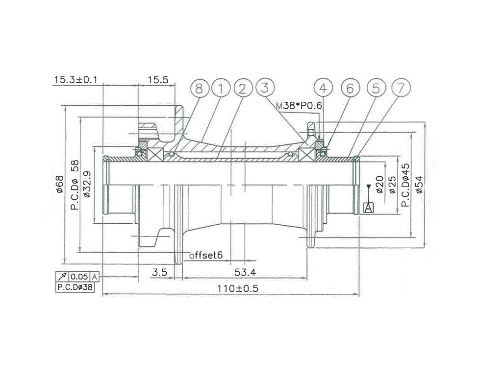 - duralová vnitřní osa 20 x 110 mm (pevná osa není součástí dodávky)