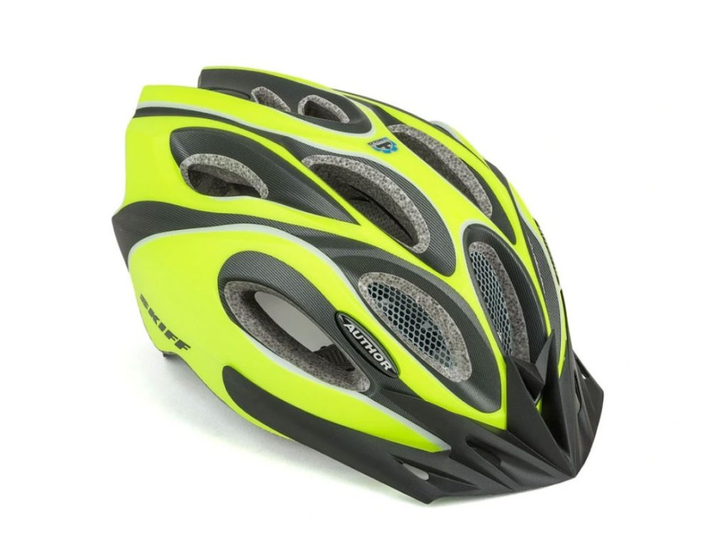 Přilba AUTHOR SKIFF přináší uživateli jízdu v pohodlné, odvětrané a bezpečné přilbě. Vnitřní tvar přilby a větrací otvory zaručují dostatečný průchod vzduchu, a tím i skvělou ventilaci. Přední větrací otvory jsou doplněny síťkou proti hmyzu. Součástí přilby AUTHOR SKIFF je odnímatelný kšilt. Upínací systém DialFit s velkým kolečkem pro snadné a rychlé nastavení. In-mold konstrukce - vnitřní výplň z grafitového EPS (pěnový polystyren) je zalisována do polykarbonátové skořepiny.