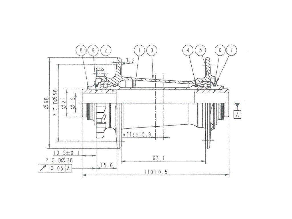 - duralová vnitřní osa 15 x 110 mm (pevná osa není součástí dodávky)