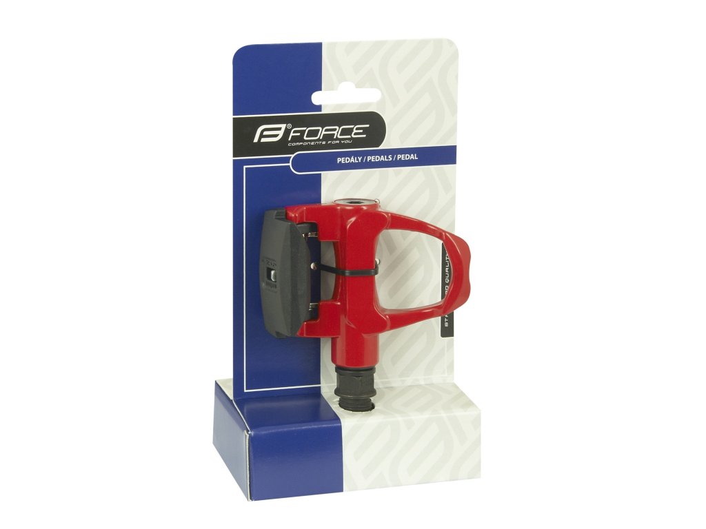 FORCE pedály nášlapné silniční + zarážky, červené