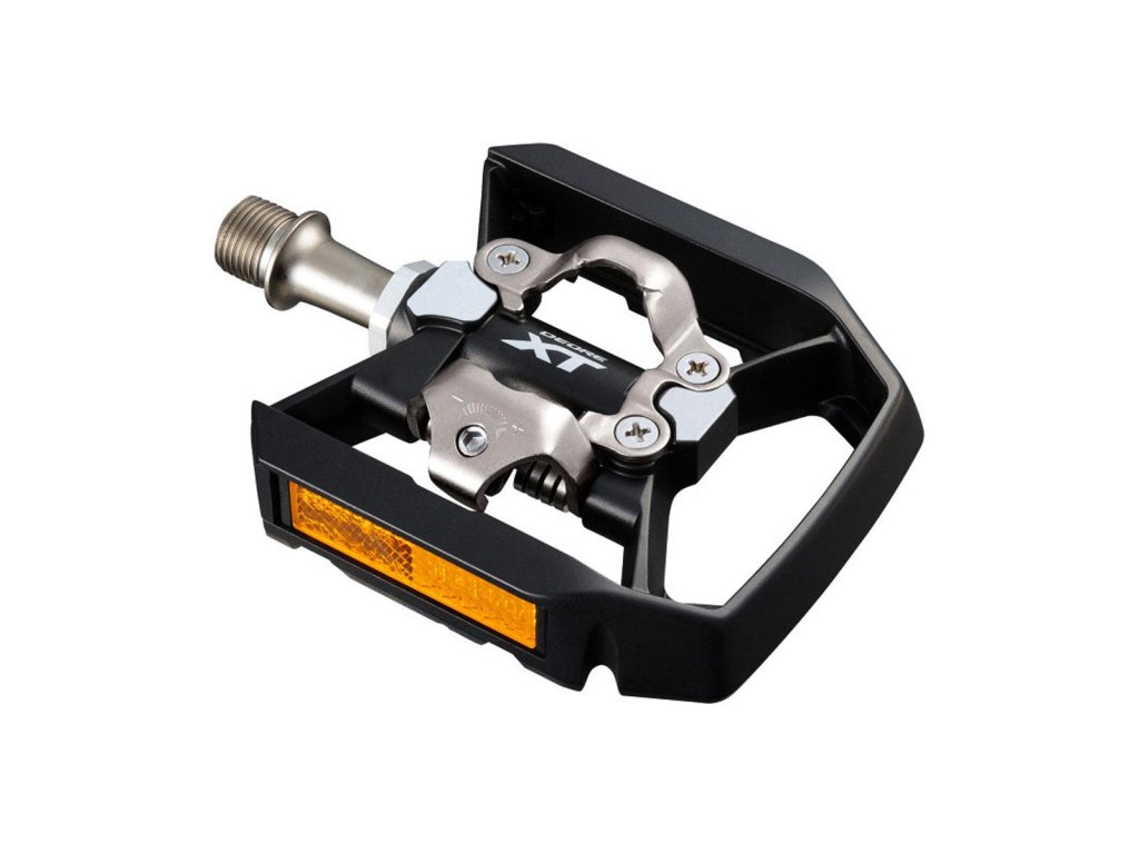 Pedály PD-T700 pro město a treking s hliníkovým košíkem a jednostranným zámkem SPD. Druhá strana pedálu umožňuje použití klasické sportovní obuvi nebo jízdu bez nutnosti upnutí zarážky. Nastavitelná síla zámku pro upnutí a odepnutí zarážky. Dodává se se zarážkami SM-SH51 , pro jednosměrné uvolnění upínání.Typ: CTB, Celková hmotnost balení: 392 g, Použití: Trekking, jednostranný, SPD, černý, se zarážkami SM-SH56, Materiál: tělo pedálu (hliník), spona (chrom+ocel)