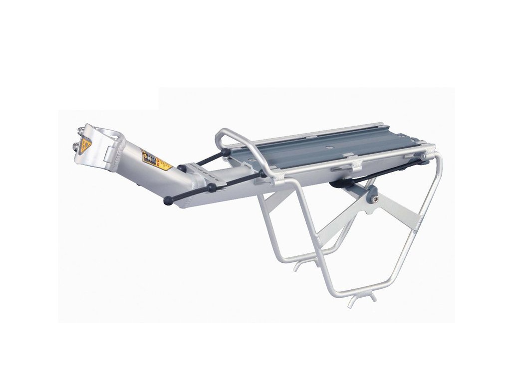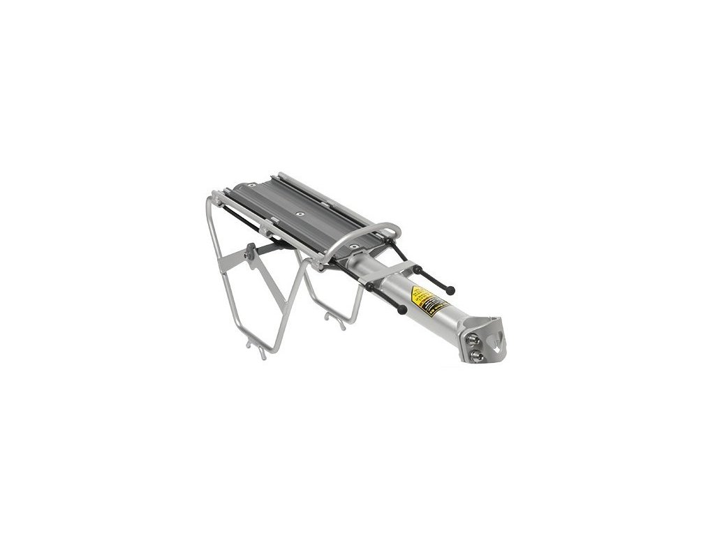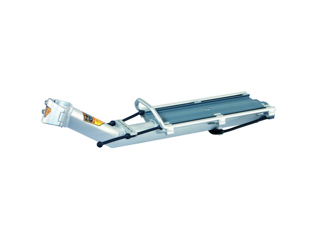 lehký zadní nosič pro silniční kola do 7 kg - typ V pro velké rámy s uchycením na sedlovku - vyroben ze zlatého Al 6061 T6 - umožňuje upevnění jakéhokoli zavazadla z řady RX Trunk Bag - upínací objímka n