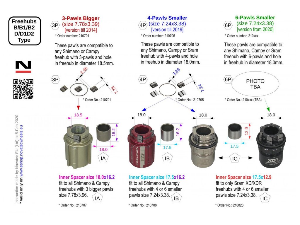 Novatec vnitřní rozpěra pro 4/6 pawls B/D Shimano/Campagnolo ořech