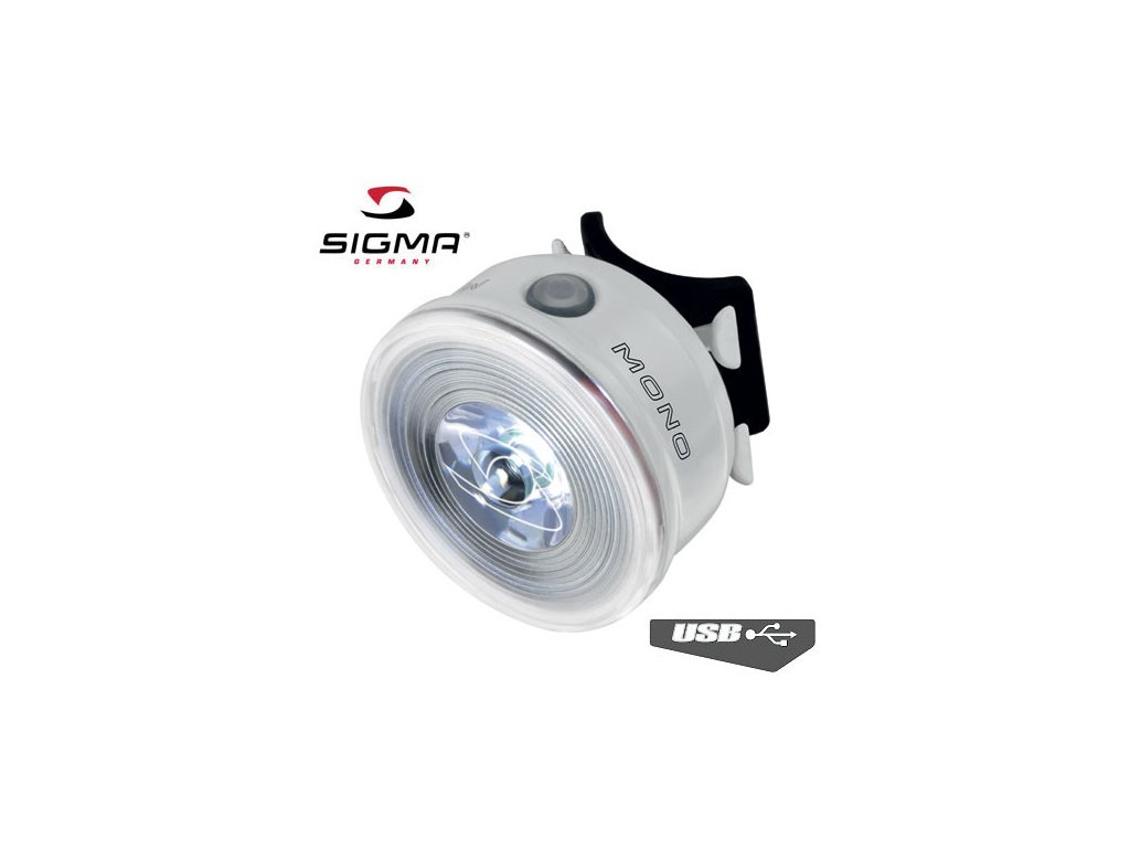 Přední světlo Sigma MONO FL s nabíjením přes USB zaujme mimořádně jasnou bílou 0,5 W Power LED. MONO RL zajišťuje vynikající viditelnost cyklisty díky systému SIGMA LOOP-LIGHT-SYSTEM. Atraktivní kruhový design jistě upoutá pozornost.