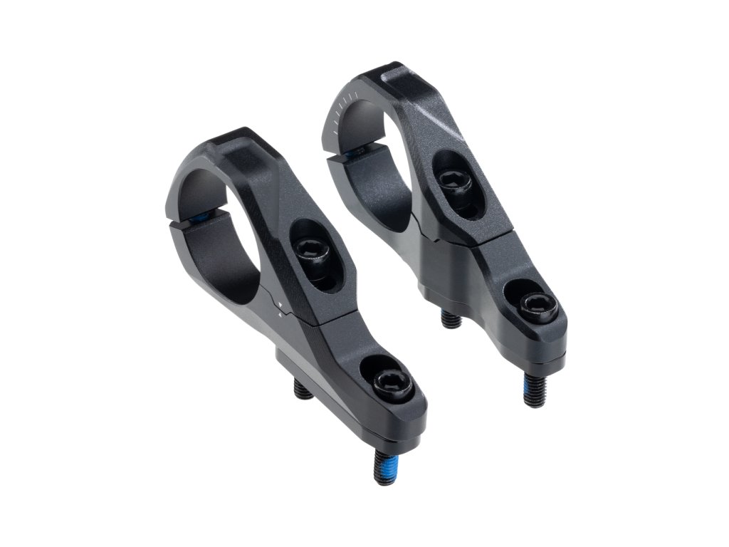 CNC obráběný představec z hliníkové slitiny 7075, určený pro přímou montáž na DH vidlice. Má nastavitelnou délku a výšku (v krocích po 5 mm), což umožňuje přesné nastavení kokpitu. Mimořádně široká 70mm upínací plocha zajišťuje maximální kontrolu a přesnost řízení. Přední deska s nulovou mezerou a 200° obtékáním pro rovnoměrné rozložení upínací síly. CNC obráběný představec vyrobený z hliníku 7075, určený pro přímou montáž na DH vidlice. Má nastavitelnou délku a výšku (v krocích po 5 mm), což umožňuje přesné nastavení kokpitu. Extra široká 70mm upínací plocha zajišťuje maximální kontrolu a přesnost řízení. Přední deska s nulovou mezerou a 200° obtékáním rovnoměrně rozděluje upínací sílu.