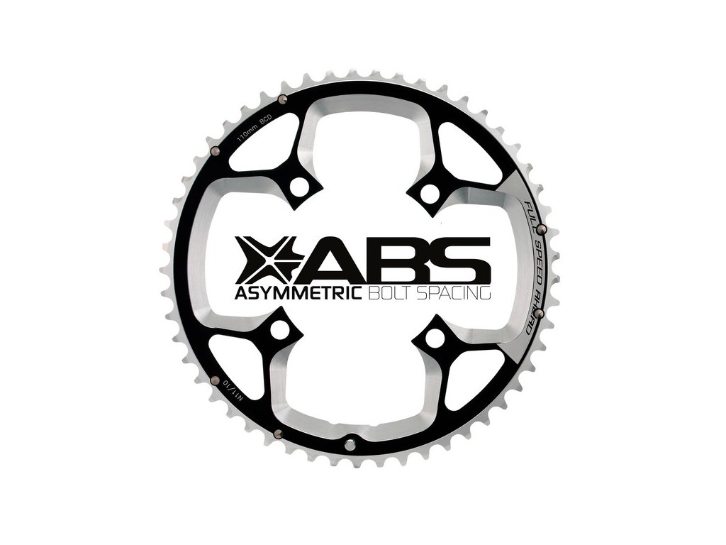 Vysoce kvalitní CNC obráběné duralové převodníky určené pro kliky FSA Gossamer ABS (Asymmetric Bolt Spacing), 50 zubů, BCD 110 mm ABS, 10/11 rychlostí.