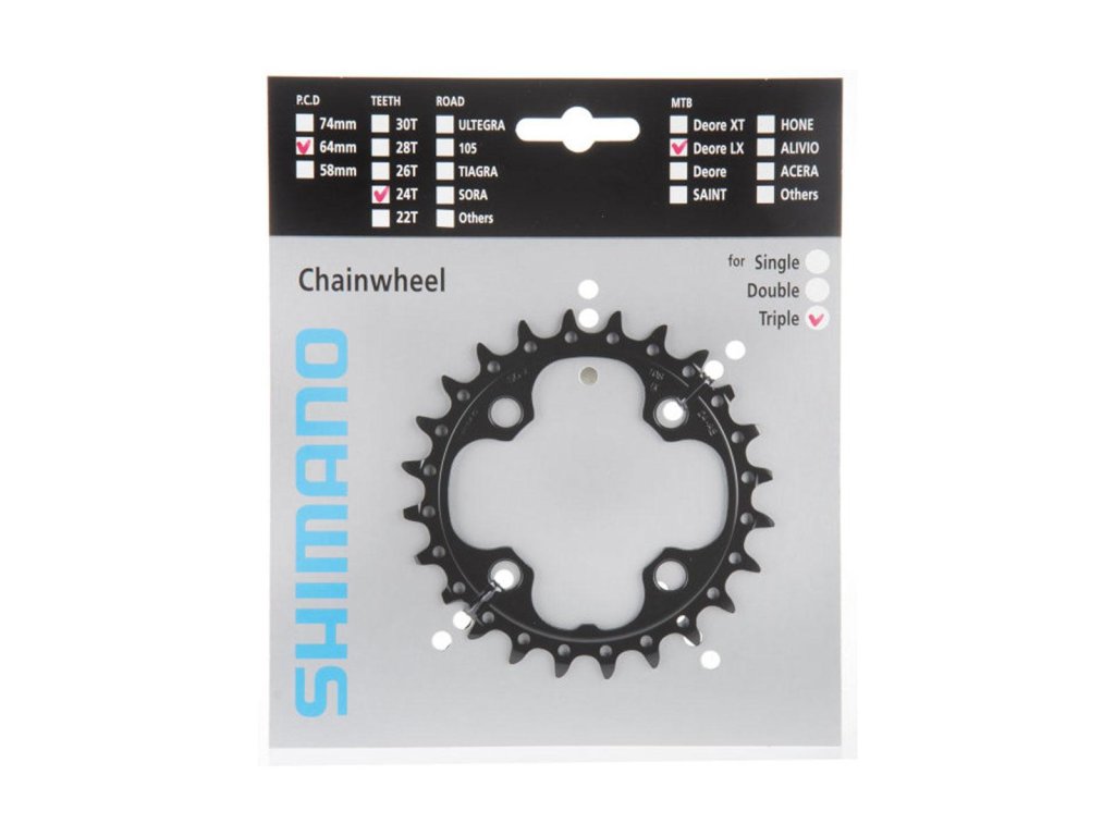 Nejmenší převodník SLX pro 10kolové kliky FCM660 s 24 zuby. Bez ostruhových zubů. Pro trojitý převod.Typ: MTB, Celková hmotnost balení: 66 g, Počet zubů na přehazovačce: 24, Převody přehazovačky: 10 rychlostí, Kombinace přehazovačky: 44/32/24, Počet převodů: 3x9, Rozteč přehazovaček: 64 mm, černá barva