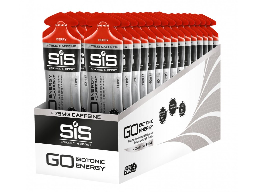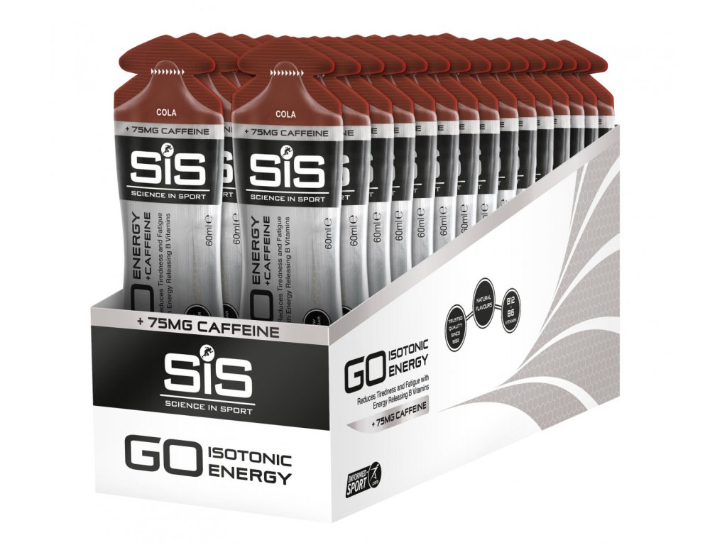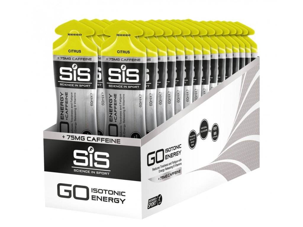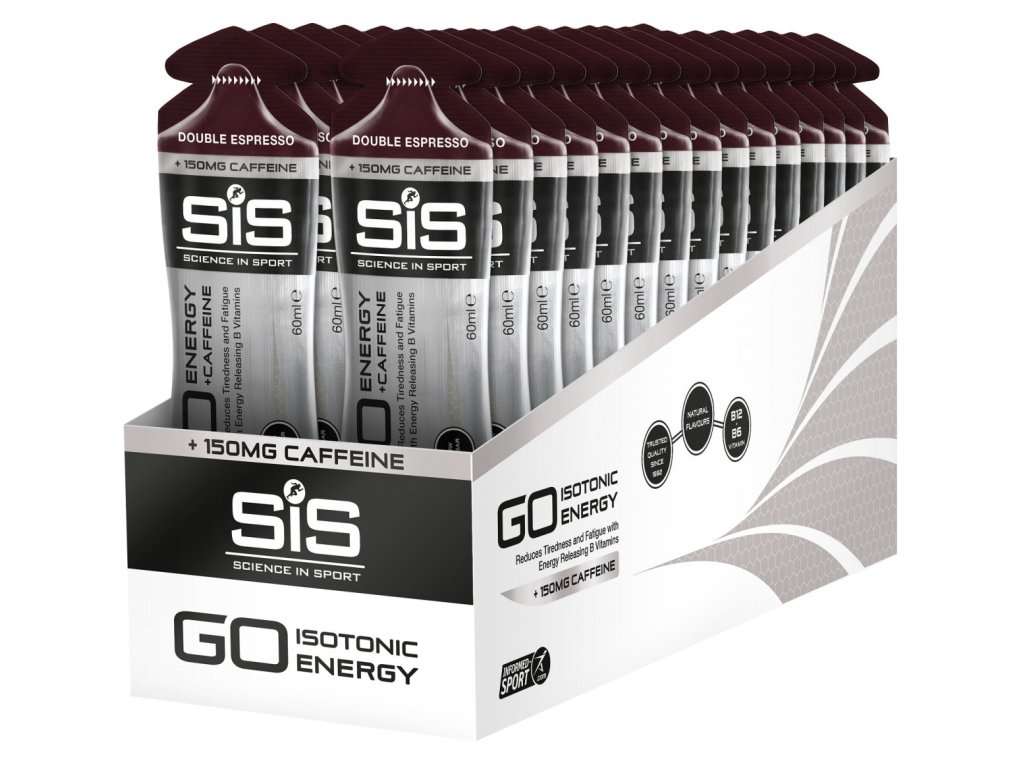 Energetický gel SiS GO Energy + Caffeine Double Espresso obsahuje až 150 mg kofeinu a 21,5 g sacharidů v jednom balení, a tím přispívá ke zlepšení fyzické a duševní pohody, podporuje krevní oběh, a tím efektivnější přísun živin do svalů, zlepšuje koncentraci. Ostatní příchutě obsahují 75 mg kofeinu. Gel je vhodný i pro vegany.