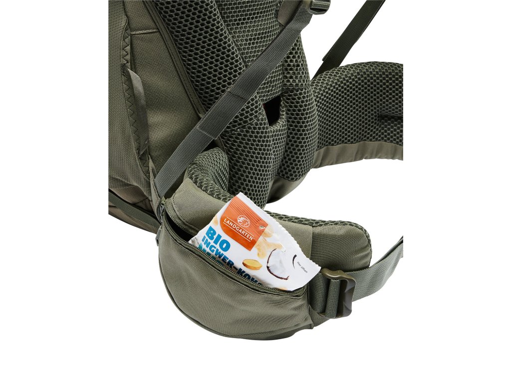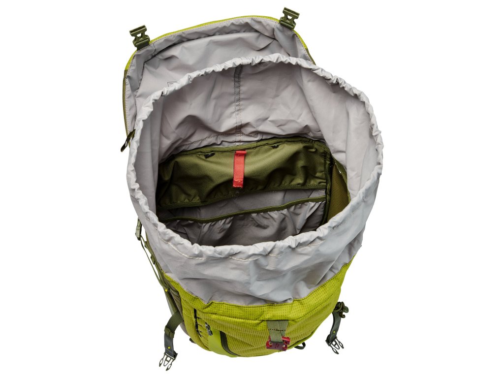- polstrovaný bederní pás s kapsou, přístup do hlavního prostoru také přes zip, variabilní výška víka, kapsa na víku, další kapsa na zip uvnitř , prostorná přední strečová kapsa, boční strečové kapsy s otvorem pro cestování