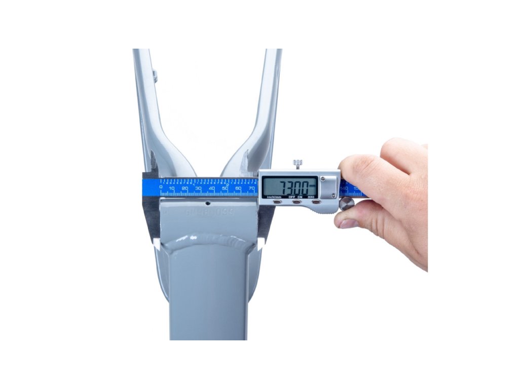 Digitální kaliper pro univerzální použití (v cyklistice např. pro měření průměru sedlovek, řídítek, os, čepů, paprsků, ložisek atd.).