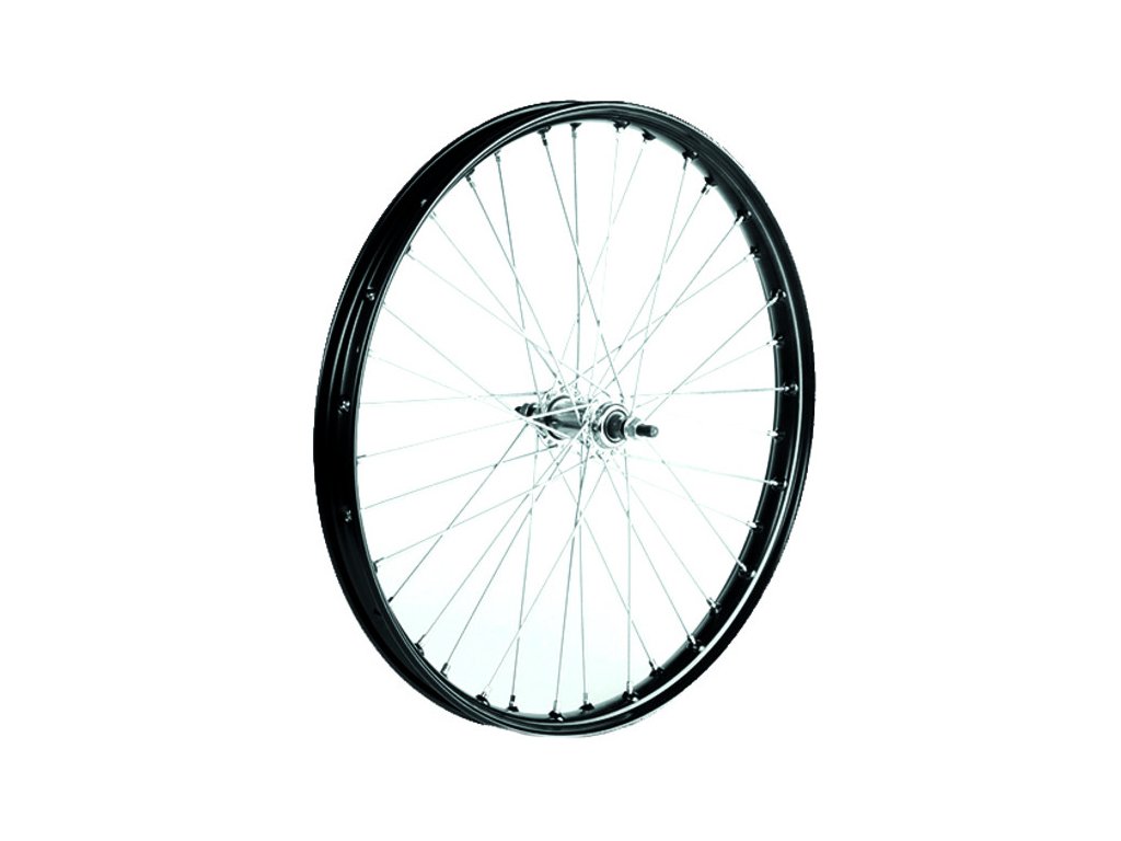 ručně vypletené kolo, určené pro montáž na ruční vozíky s pneumatikami pro mopedy 2 1/4 - 19, ocelový ráfek 23-2 s 36 otvory a komaxitovou úpravou - vyrobeno v ČR, ocelový náboj Joytech S01E s kaleným okem 10x100x160 mm pro matice, pozinkovaný