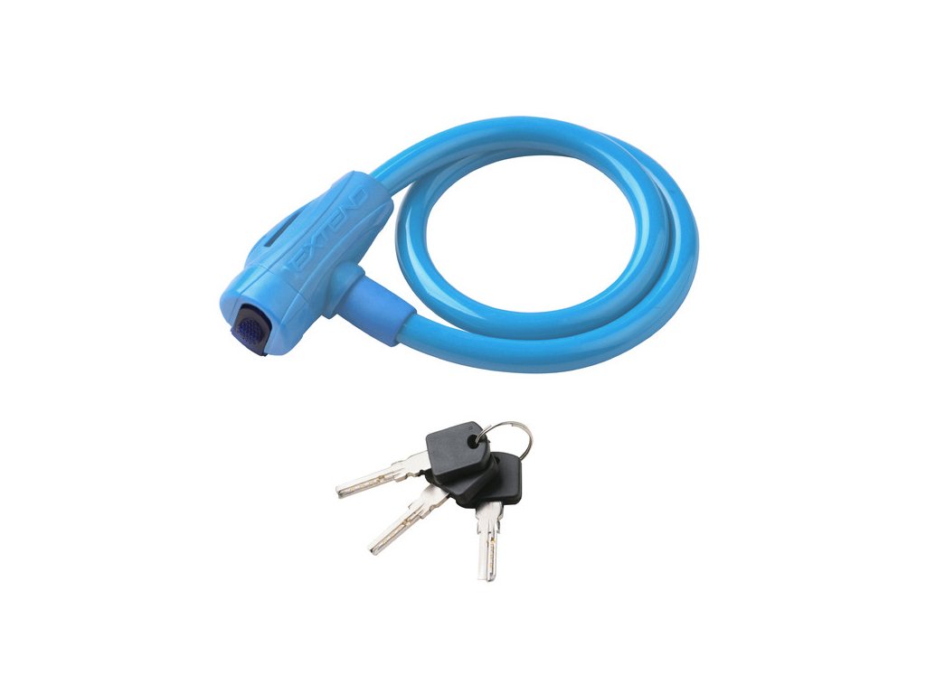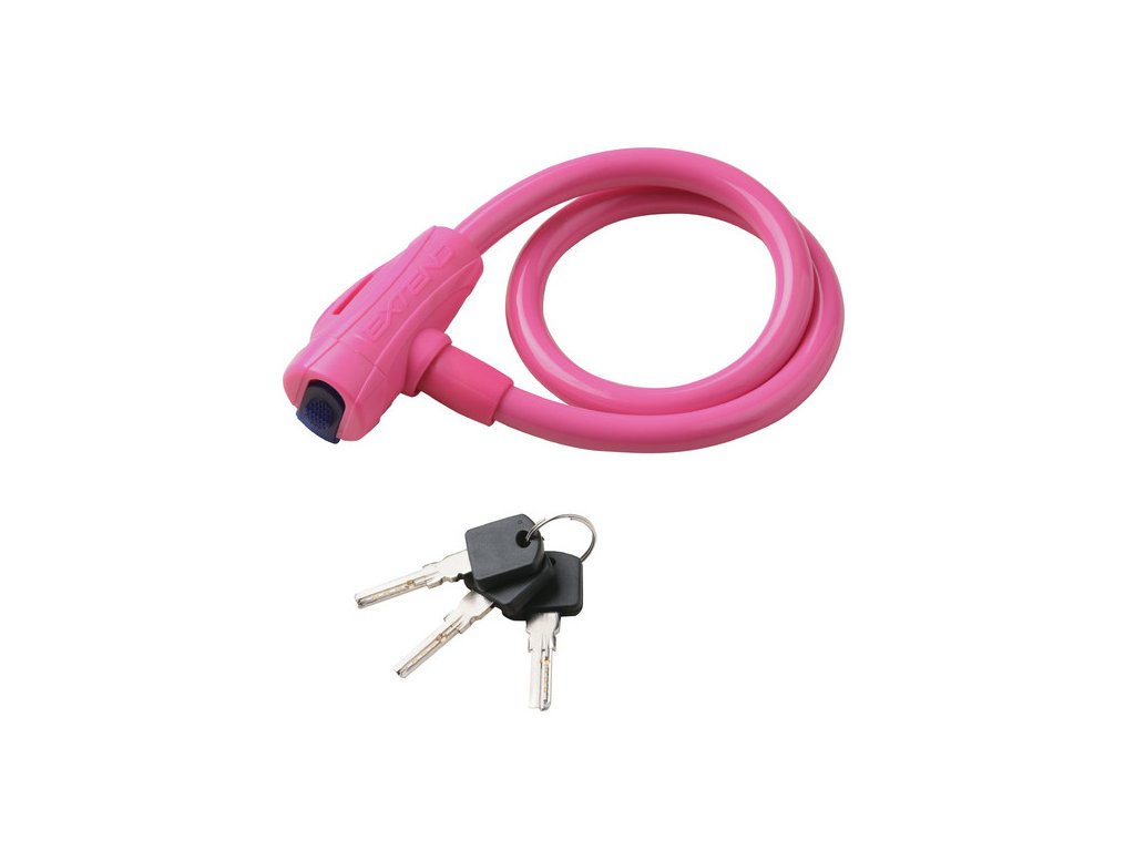 - kabelový zámek se stočeným ocelovým lankem - s barevným krytem lanka - délka 650 mm - průměr 12 mm - cylindrická vložka se 3 klíči - protiprachový kryt - chrání zámek před vlhkostí a nečistotami - barva: růžová, světle zelená, fialová, světle modrá, červená