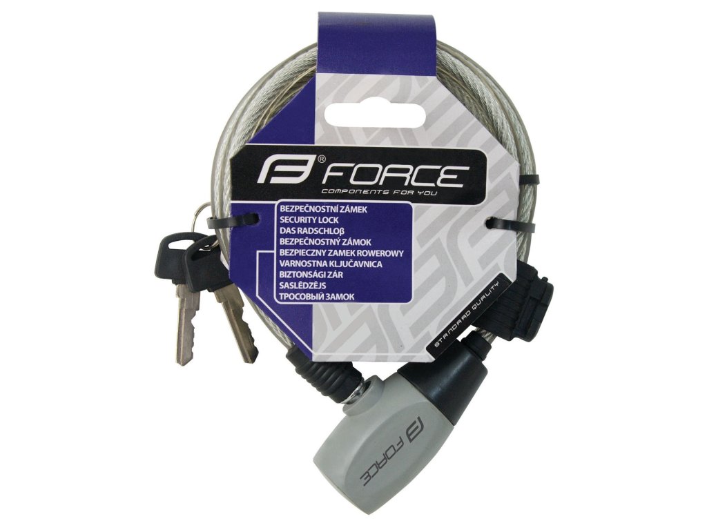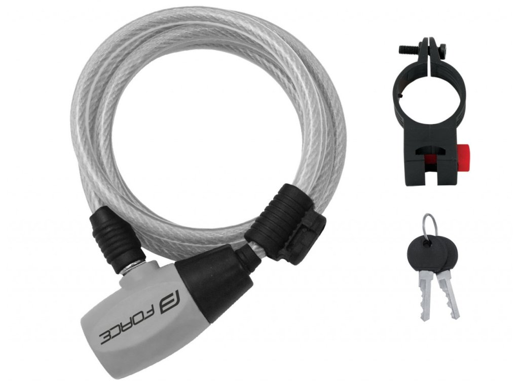 FORCE zámek RON spirálový s držákem 110cm/8mm, čirý