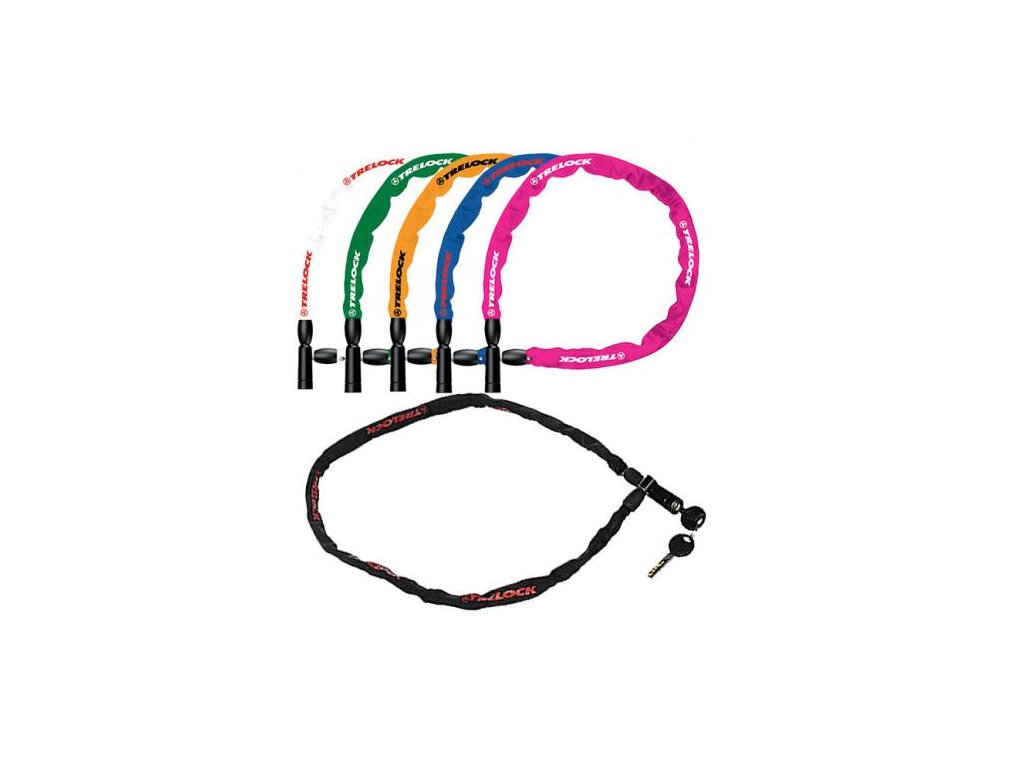 Řetězový zámek Trelock BC 115 s klíčem v různých barvách.